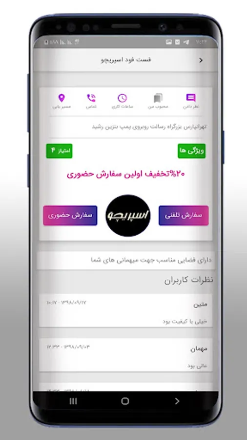 وشما به سادگی سفارش غذا خود را اعلام مینمایید و می توانید بهترین کیفیت و بهترین تخفیف ها رو از خود رستوران دریافت نمایید.
