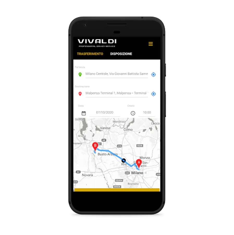 Booking a transfer or arrangement is very easy with the VIVALDI - Professional Driver Service app.