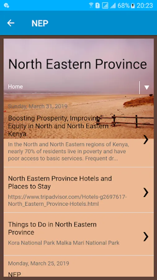 The North Eastern Province (Somali: Gobolka Woqooyi Bari) is one of the former provinces in Kenya. It has a land area of 127,358.5 km2, with its capital at Garissa. Previously known as the Northern Frontier District (NFD), the territory was carved out of the Jubaland region of present-day southern Somalia during the colonial period.[1] It is and has historically been exclusively inhabited by ethnic Somalis.[2][3]