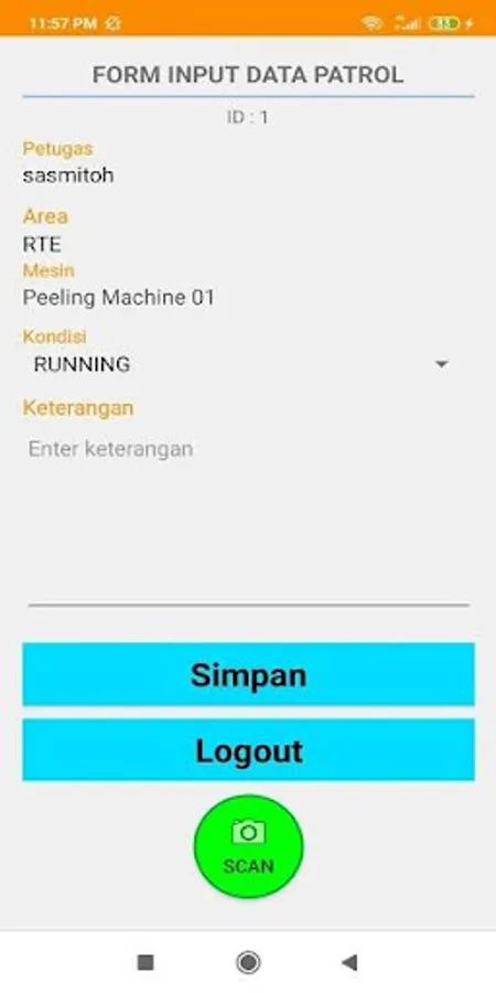 Aplikasi scaner ini berfungsi untuk patrol mesin teknisi engineering
