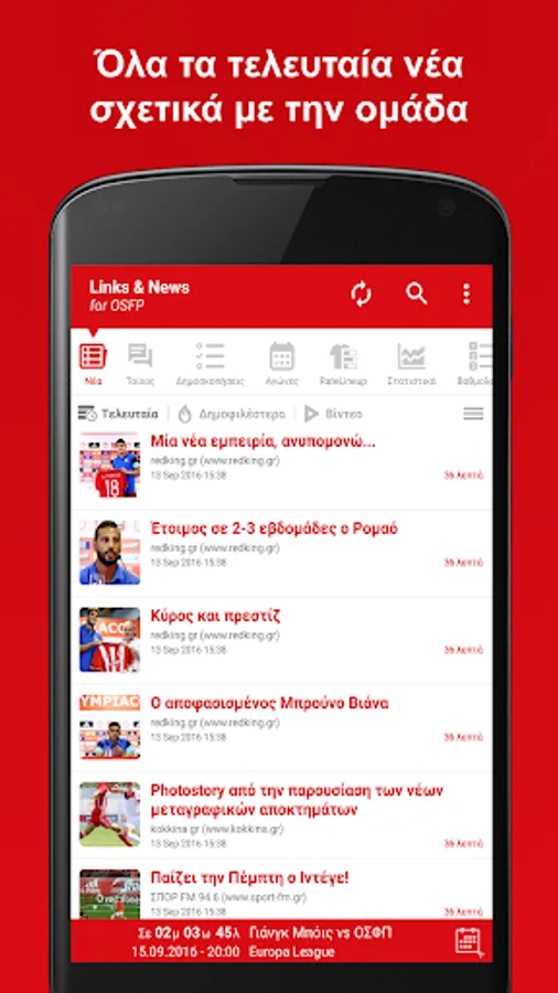 Get informed for all Olympiacos news and articles links gathered from major sports websites in Greece