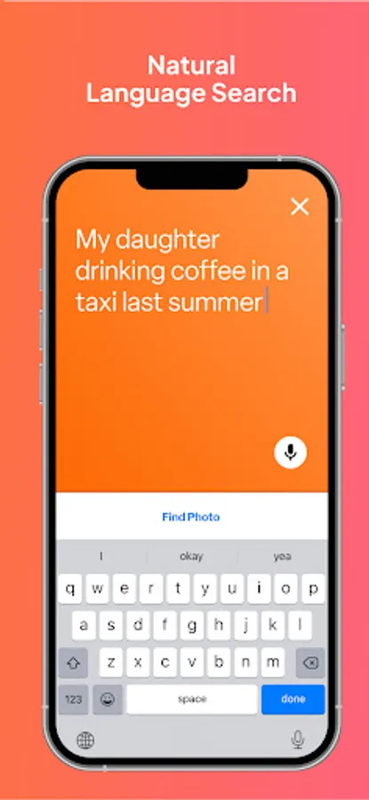 Picdmo is an Artificial Intelligence (AI) powered app that analyzes your pictures, creates albums for you, automatically puts your pictures in your custom albums, and allows you to use complex natural language search phrases to find the exact photo you're looking for in seconds. After you upload all your pictures to Picdmo use the AI-powered search that finds the exact photo you’re looking for in record time. Just speak into the app the way you think. For example, "Show me all my pictures of me drinking a blue drink on the beach". Find the photo you’re looking for and never abandon your search in frustration again. Additionally, uploading your pictures to Picdmo provides secure cloud backup for all your photos.