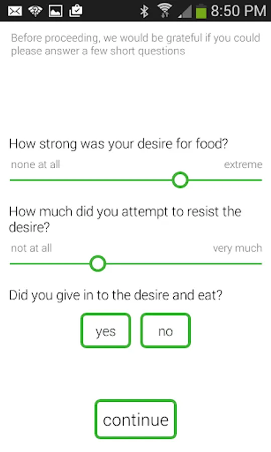 The FoodT app will ask you a few questions before and after you play so that our research team can see whether it helps you reduce your food intake, craving and weight. You will also be asked for a few basic details about yourself (age, sex) but the app will not collect any information about your identity. All the data you provide will be anonymous.