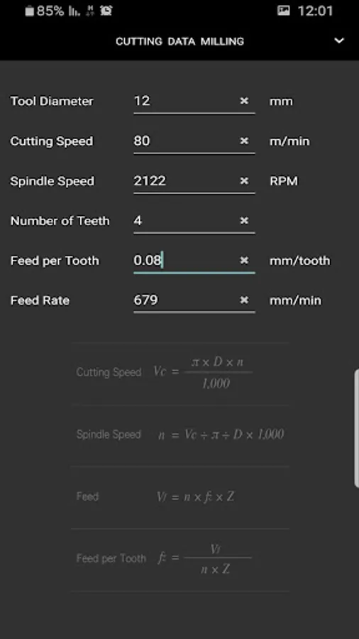 iMachinist is a simple to use CNC calculator app that calculates for you the cuttings speed, RPM, feed rate and more for your milling, drilling and turning operations.