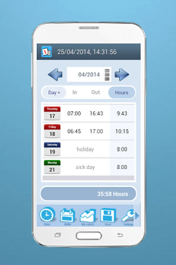 - Calculate overtime (night, holiday, day off , sick days, and much more ... )
