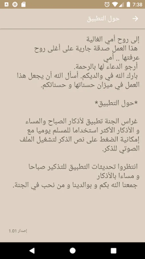 Grass Paradise application contains the most important Azkar that a Muslim needs in his day written and spoken