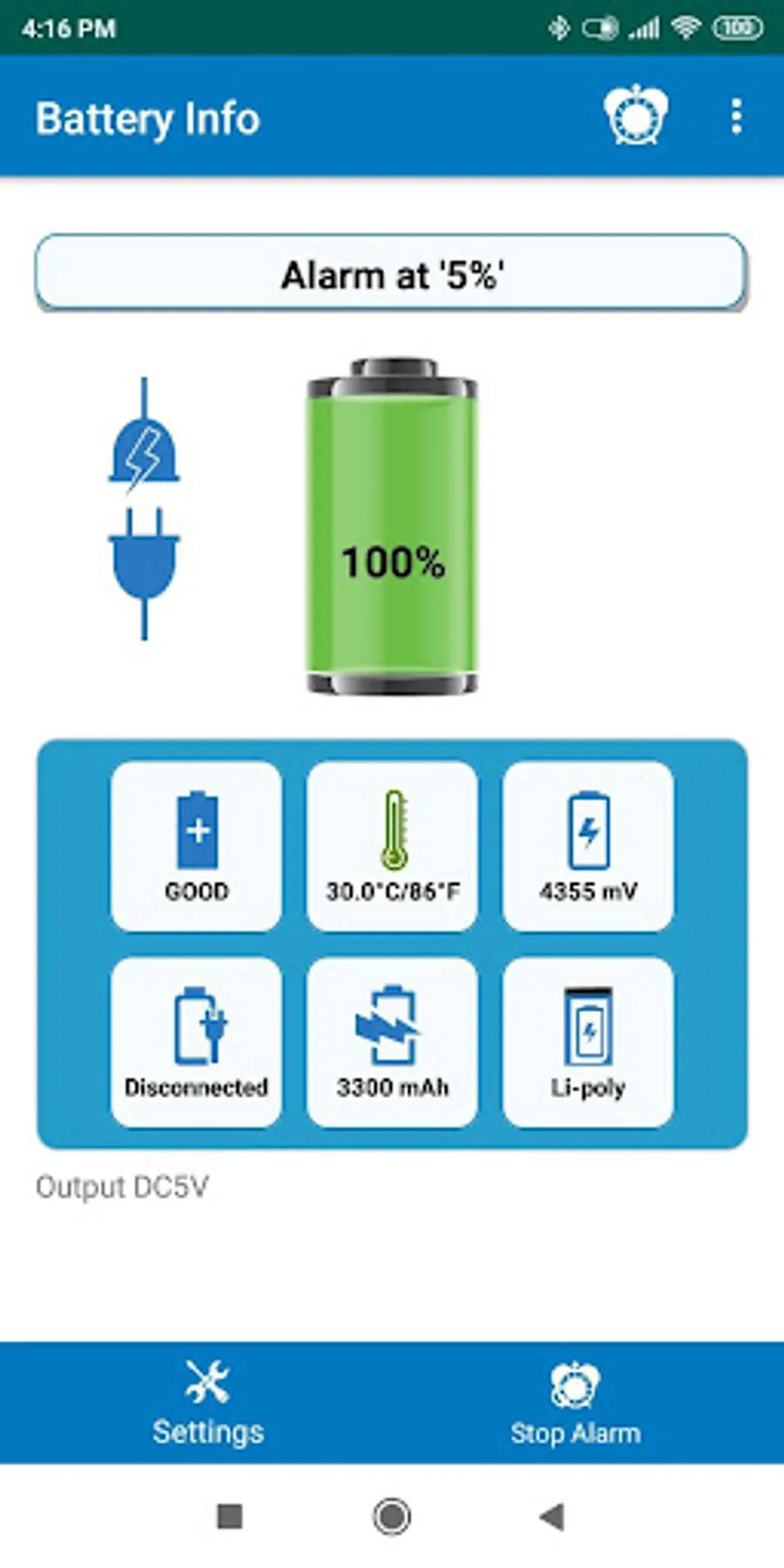 this App you can know the Battery Percentage, Temperature, Voltage and many more things