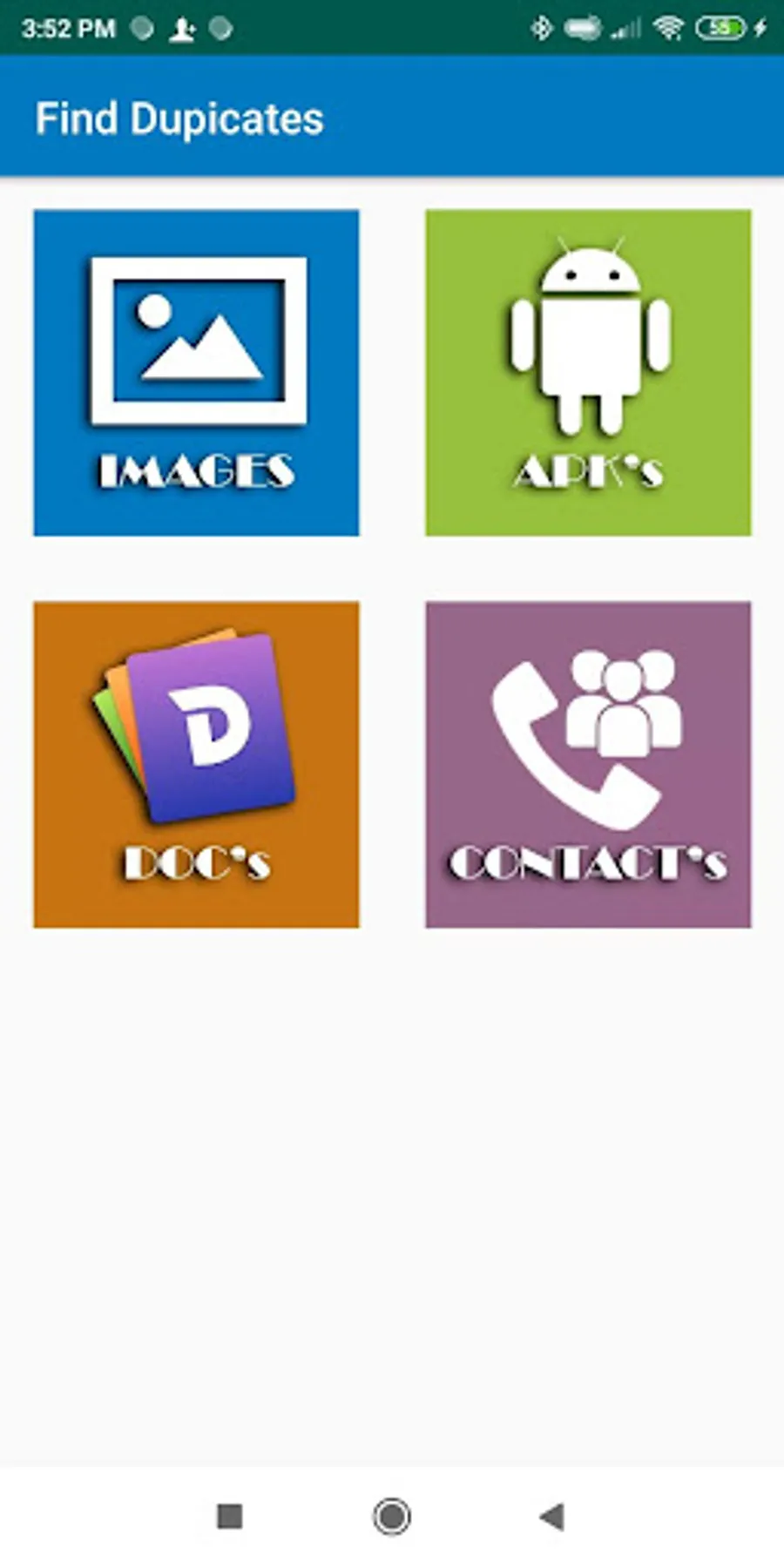 Its find duplicates of images, Apk files, documents and contacts, then you can delete or remove unwanted files or details with this application