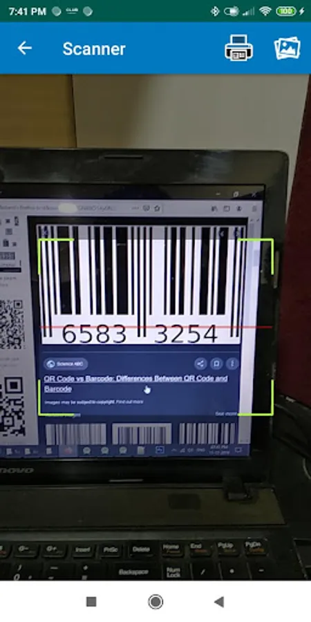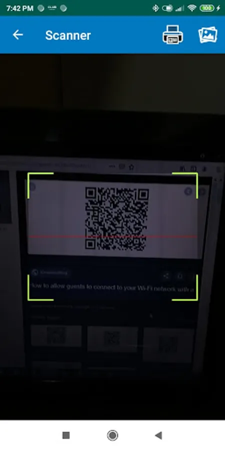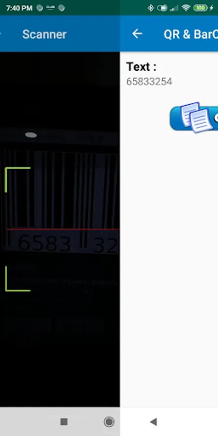 Opening the app immediately shows the scanner window with a blue border and a red horizontal line.Place the red line over the code