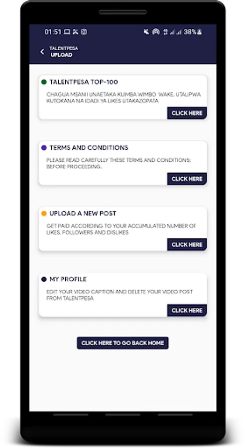 Youth With Talent; Designed for Tanzanian youth in general; (students and non-students). The talented youth; earns monthly income based on traffic of viewers they attract to the APP. Kipaji Chako; Ndio Mtaji Wako