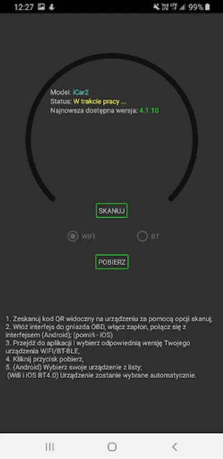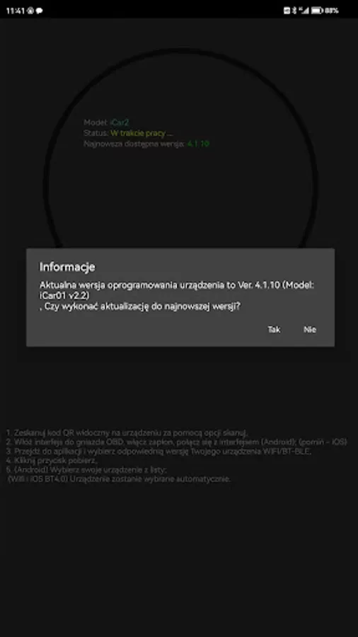 The update increases the security, reliability and speed of the device, and the whole process is explained step by step in Polish right after opening the application.