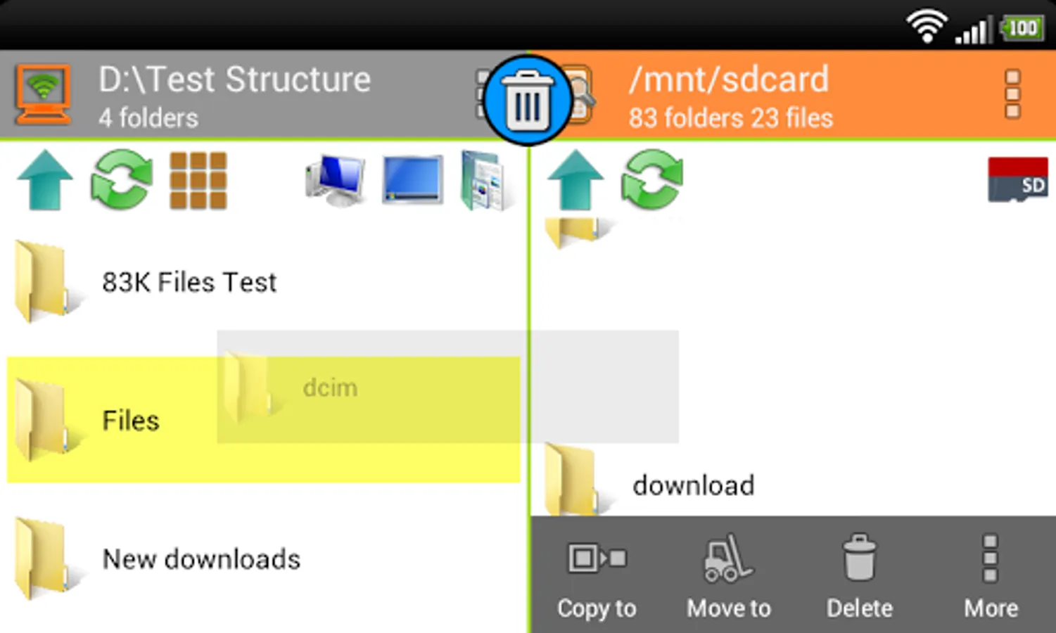 • Supports drag drop (Works from Android 1.6), move, copy, rename, delete, upload, download and stream functions.