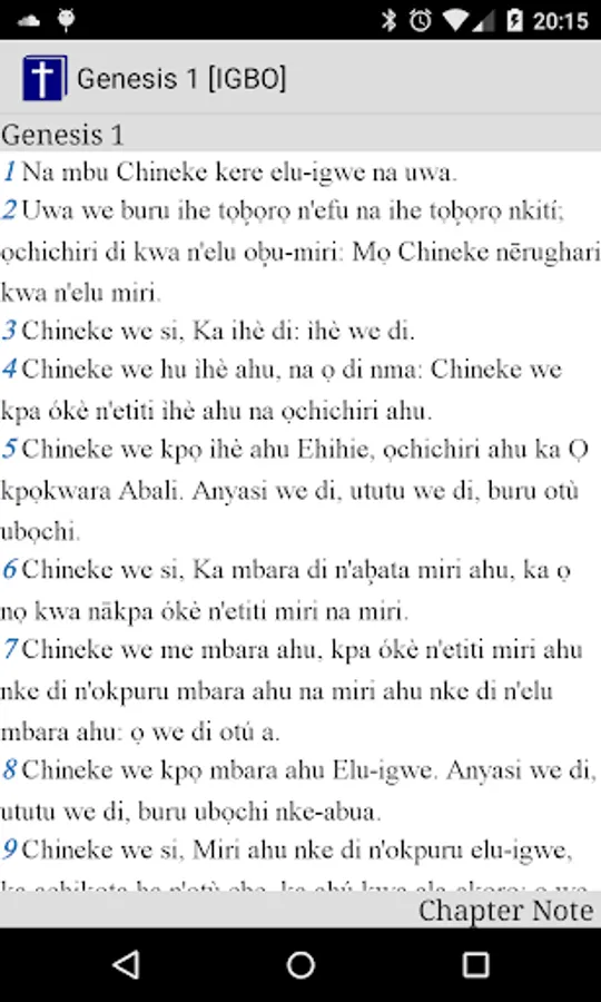 This is a igbo bible text which can be read using our bible reader application.