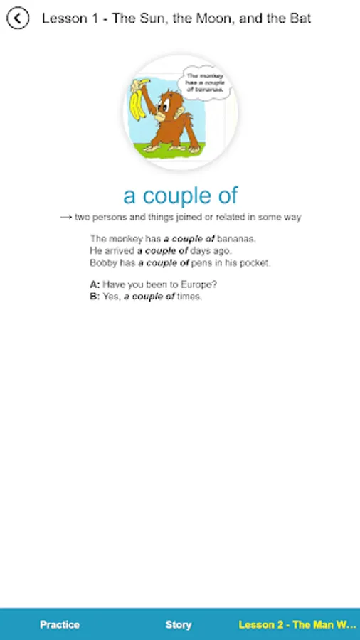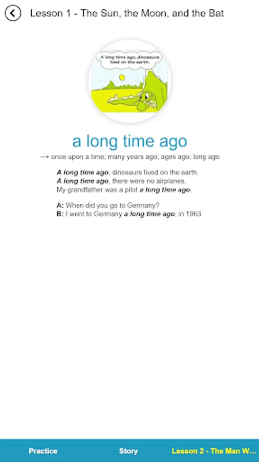 Within each lessons, target idioms are first defined for students. The definitions may explain the idiom in simple terms or use synonyms or other idioms to build a student's understanding of the meaning underlying each idiom. Each definition is then followed by sample sentences and short dialogs using the idiom in context. Finally, idioms are illustrated with humorous illustrations which can help build a memorable picture of each idiom's usage in the reader's mind.