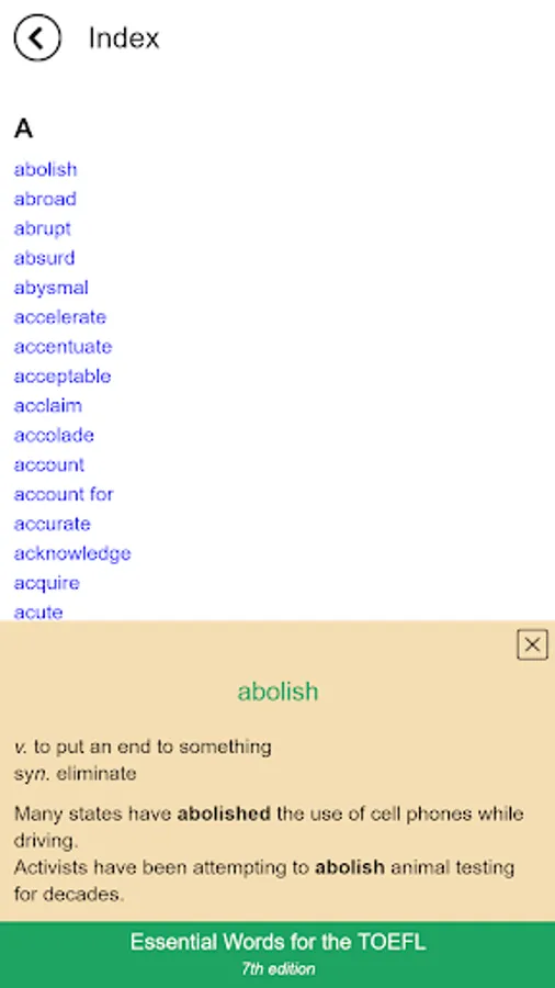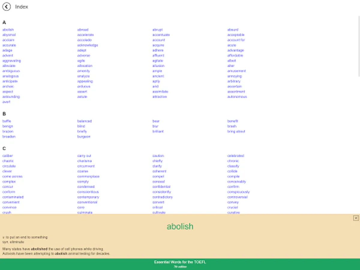 This 7th edition of Essential Words for the TOEFL has an extensive, revised list of 500 words with improved exercises and updated reading selections. This edition makes Essential Words one of the most thoroughly researched books of its kind. It is the product of extensive study of previous TOEFLs and academic materials from which the questions on the TOEFL are produced. The result of this research is this powerful book of words that will lead you to success on the TOEFL.