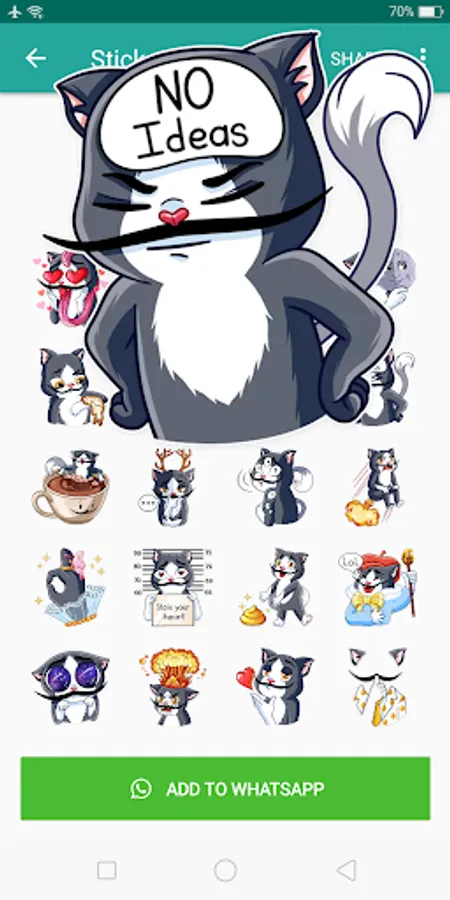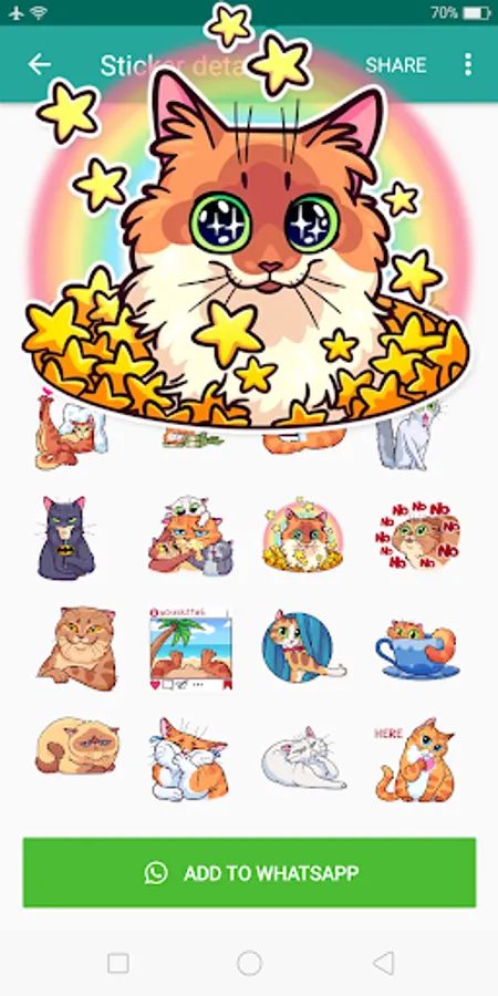 Free 10 Pack of Cute Cat Sticker for WhatsApp (WAStickerApps).