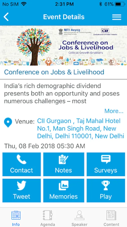 Experience a whole new way of engaging at CII's professional and business events. No more scattered event information - written notes on writing pads, event related communication through email, event material in printed brochures, event photos in phone gallery, networking through paper business cards etc. With just one app on your device, keep all the information related to any CII event that you attend in one single place.