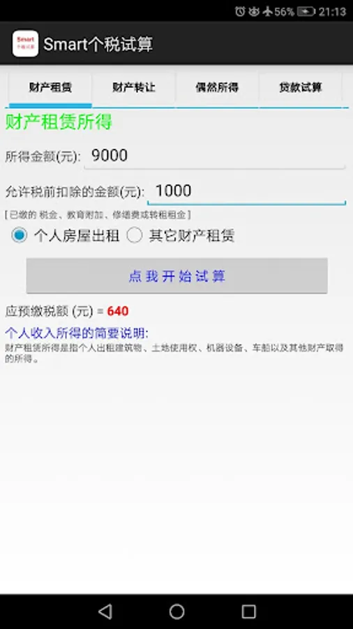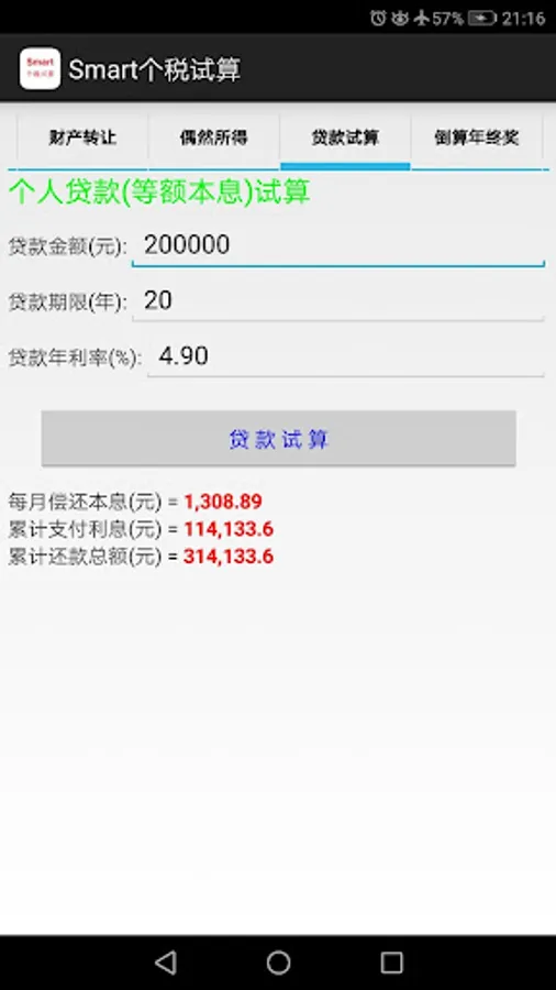 2. It supports 9 kinds of individual incomes. In addition, it supports calculations of one kind of individual loan.