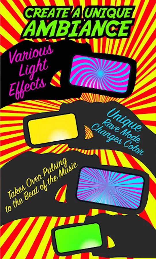 Party Light is the original party lights app that turns your phone in to a hypnotic strobing light machine! Party Lights has plenty of trippy effects. Party Light makes use of your phone's internal accelerometer, and camera LED lights to pulse, strobe and mix various lighting effects based on movement. Party Light's unique rave mode changes color based on how you hold your phone. No need for glowsticks, wave your phone for a multicolored rave light. Party Light is the original disco light and dance light!