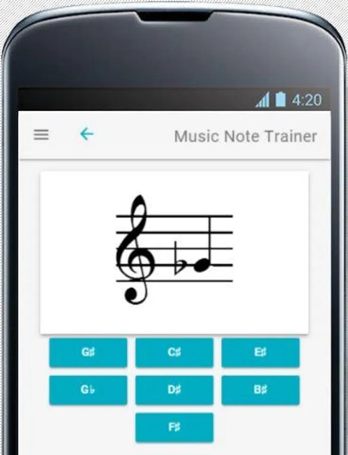 Music Note Trainer currently includes the treble and bass clefs, sharps, and flats. More features including scales and key signatures are in development.