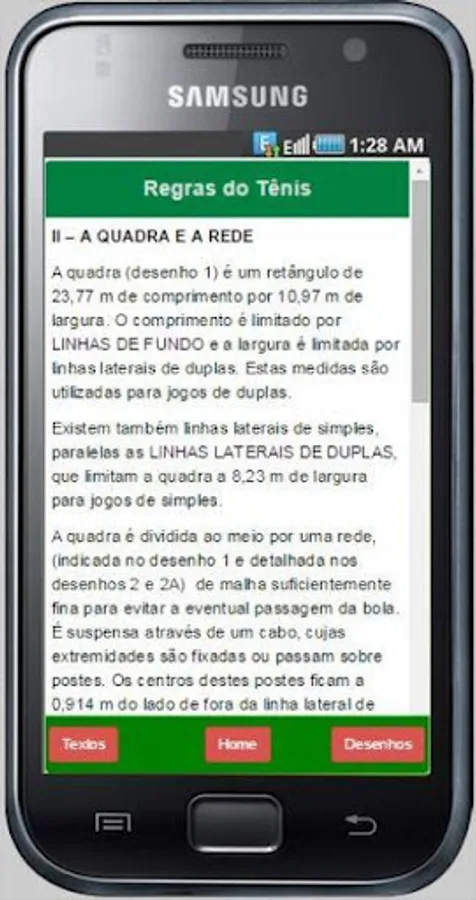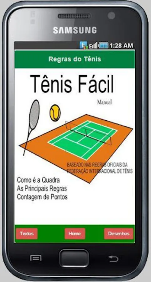TENNIS RULES aims to guide the first steps of those who want to understand the QUADRA TENNIS to watch or even begin to practice it. It consists of a menu of texts and a drawing of block, both accessed by two keys only. Now it's easy for you to watch tennis games on TV, for example, while understanding what's happening on the court.