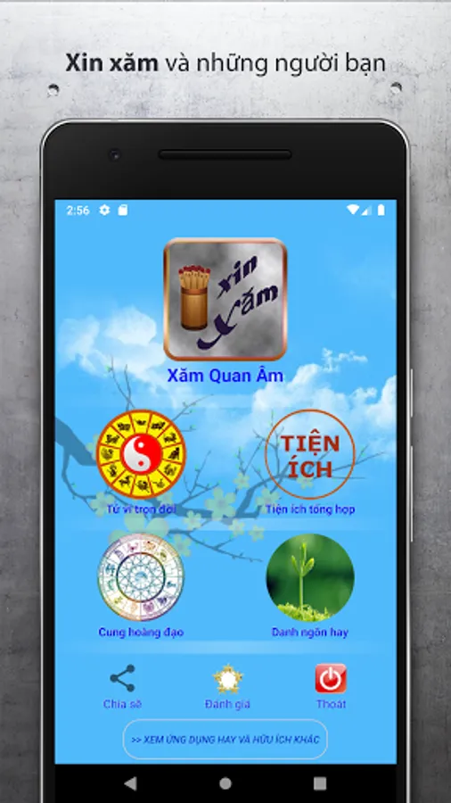 Ứng dụng xây dựng mô phỏng lại cách thức xin xăm (hay xin quẻ, gieo quẻ) tại chùa mà nhiều người vẫn thường xuyên thực hiện.