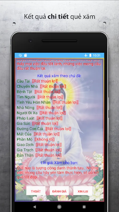 - Lời giải nghĩa cho quẻ xăm bạn nhận được.