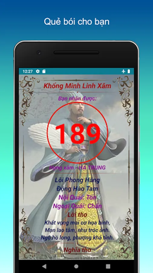 The application creates fortune-tellers based on the hexagrams of Khong Minh helps you have a great experience with the hexagrams.