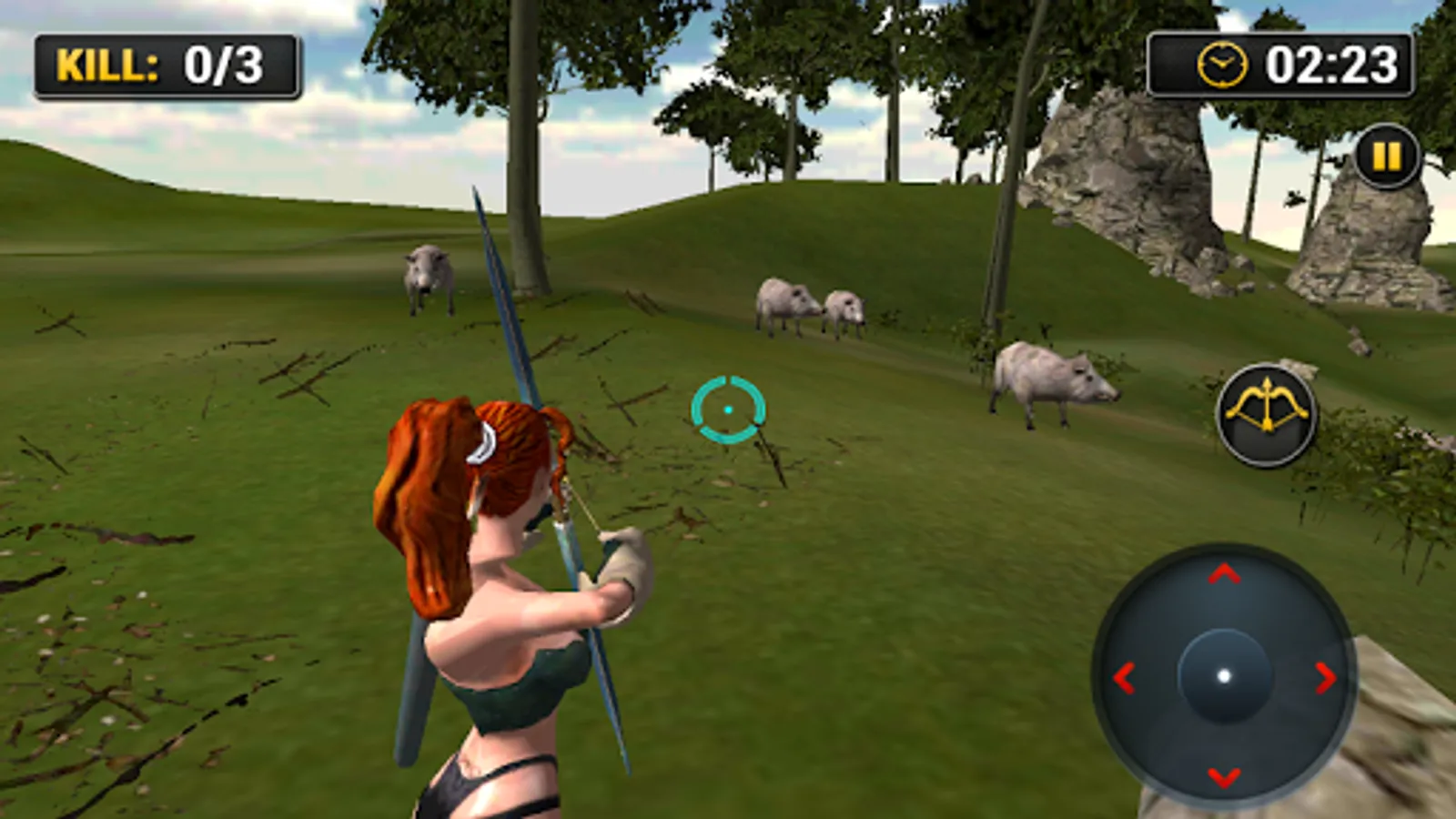Animal Hunt Archery Quest Pro is loaded with MultiTouch game controls. Navigate your character by using navigation button on screen. Locate animals by moving round, move toward animal and aim the animal from safe distance by touching on screen. After locating and aiming animal release arrow by using hit (bow, arrow) button.