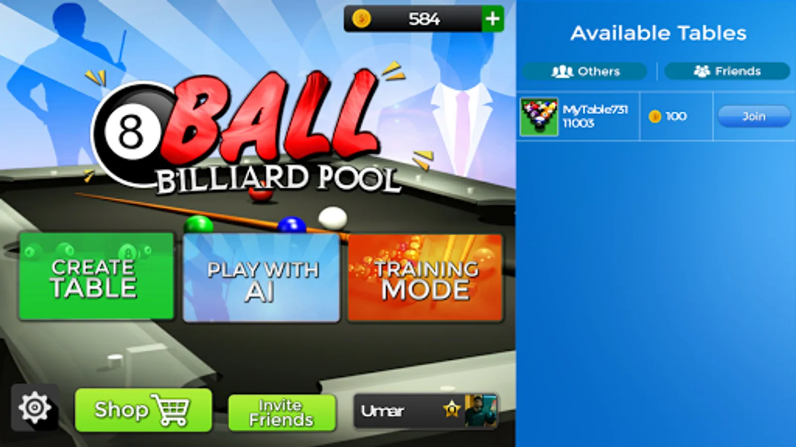 Play with your friends, challenge them with your skills of professional billiard pool trick shots. Win the game.🏅