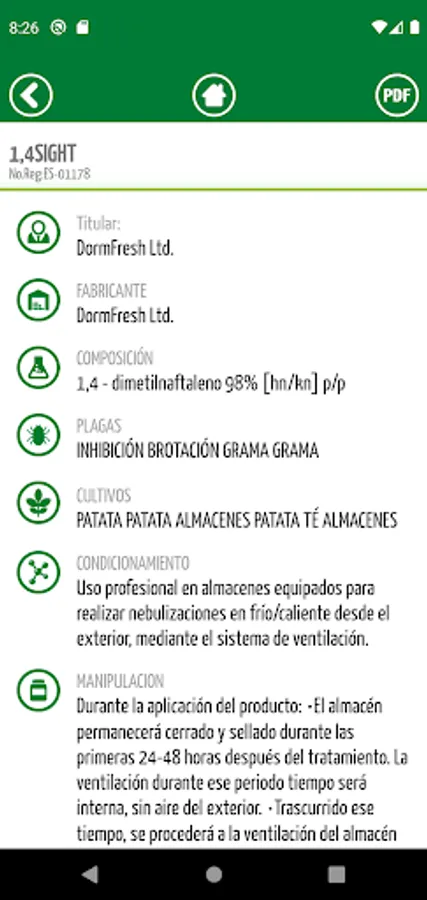 * System to directly visualize the official PDF of a product Spanish ministry.