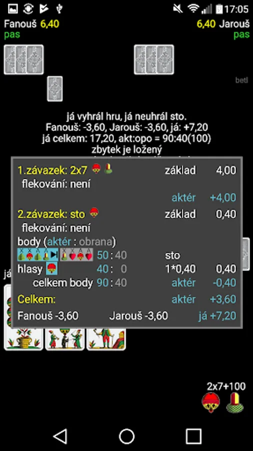 Computer teammates are not as good as the real ones, but on the other hand they have an excellent memory. If you find a significantly bad game from Fan or Jarouš, you can send it to me by e-mail (in the game detail, select Send for evaluation from the menu).