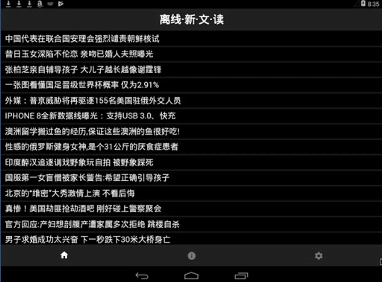 一次下载上百条新闻,然你不再无聊。此软件为绿色软件,文件小于1MB,不需要任何权限,让你用的放心!