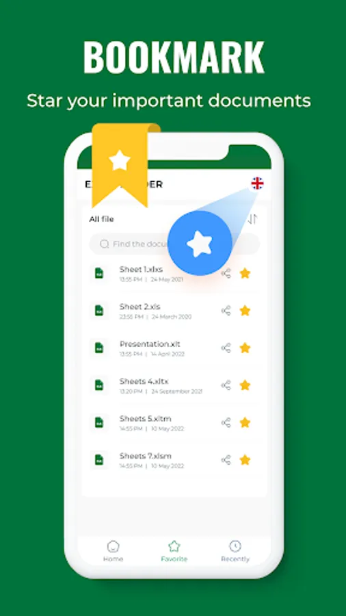 ➤ The program allowed you to highlight key excel sheets. If you have a meeting with your high-level manager tomorrow, and you have a lot of files and can't find the one you need, our bookmark will be a tremendous help. To pin your excel sheet, simply click on the star icon. You can readily see your excel sheet when you open your files since it is outstanding, and it allows you to open excel files from other apps.