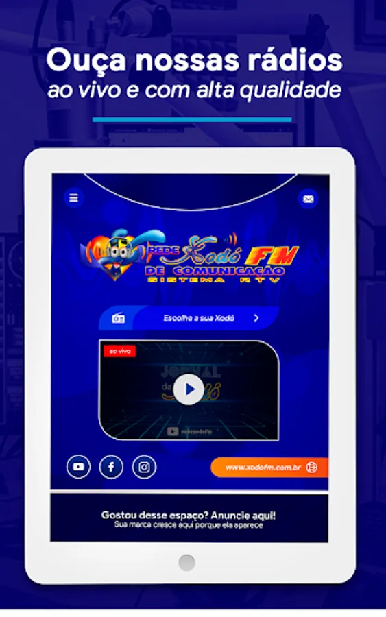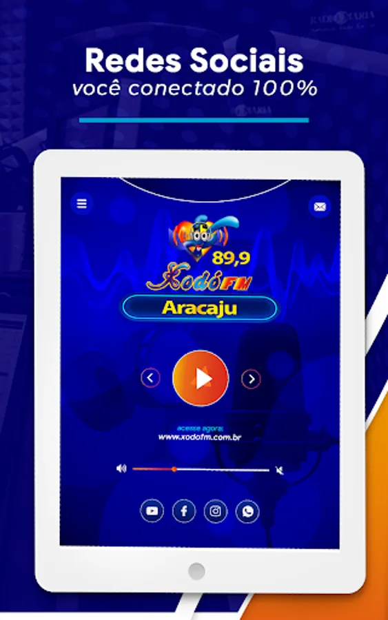 This is the goal of Sergipe's newest radio network: Xodó FM. In 2016, through its Reunited Studios (Studio A, in Nossa Senhora do Socorro, located at Rua Rio do Sal; Studio B, in Aracaju, in the Santos Dumont neighborhood; and Studio C, in Nossa Senhora da Glória, Alto da Divinéia) brings an irreverent, differentiated and innovative program to the public in Sergipe.