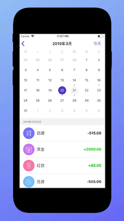 4. Efficient calendar query: with calendar query accounting, the daily income and expenditure details are clear at a glance.