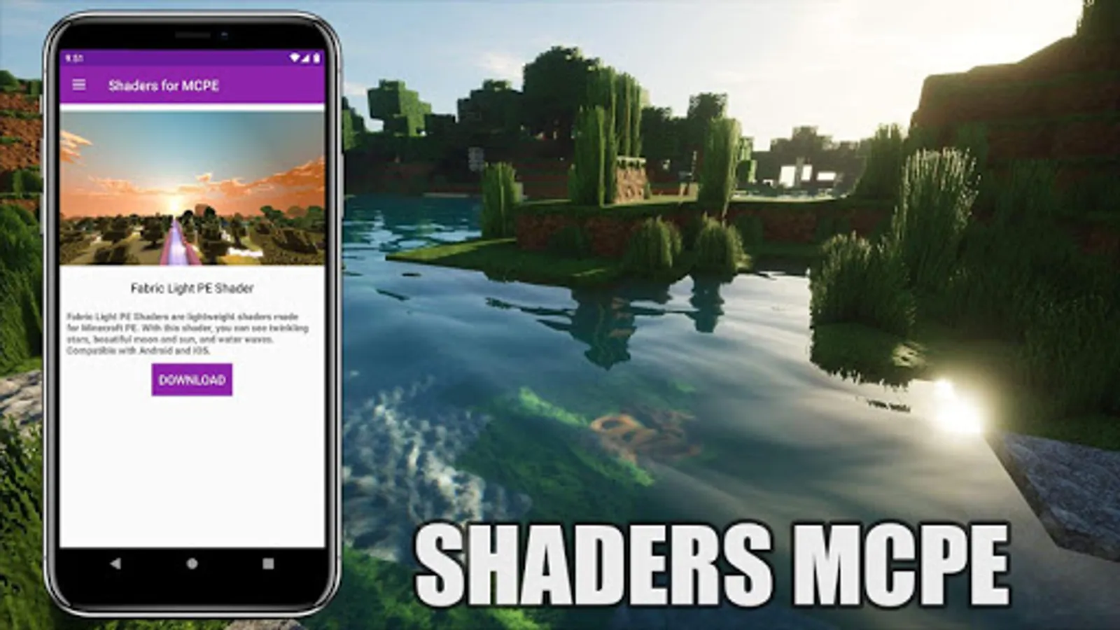 ✔️ Fabric Light PE Shader: Fabric Light PE Shaders are lightweight shaders made for Minecraft PE. With this shader, you can see twinkling stars, beautiful moon and sun, and water waves. Compatible with Android and iOS.