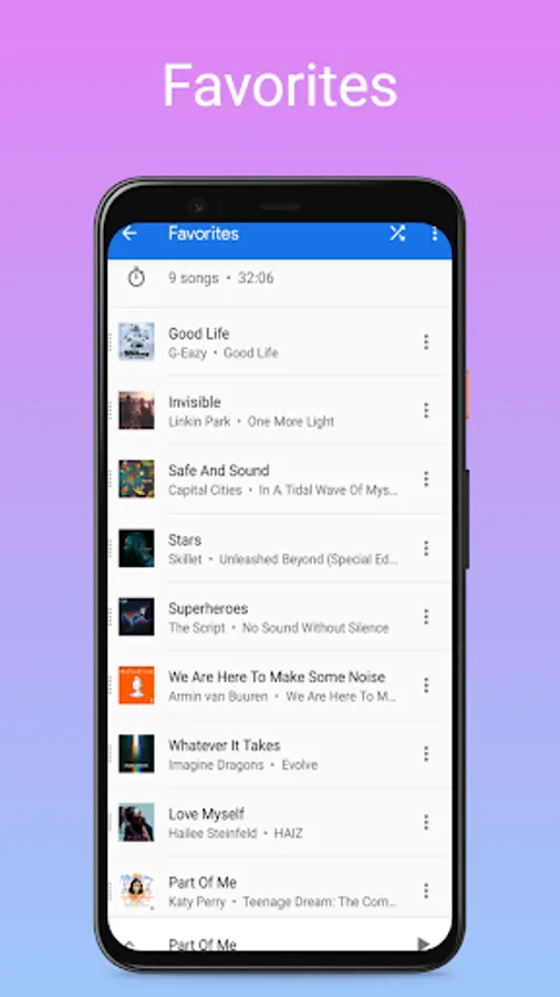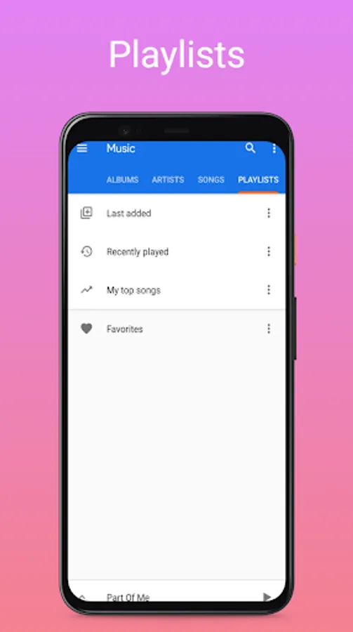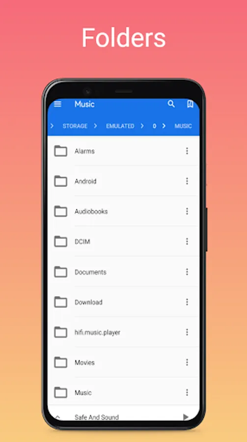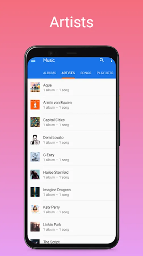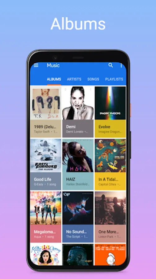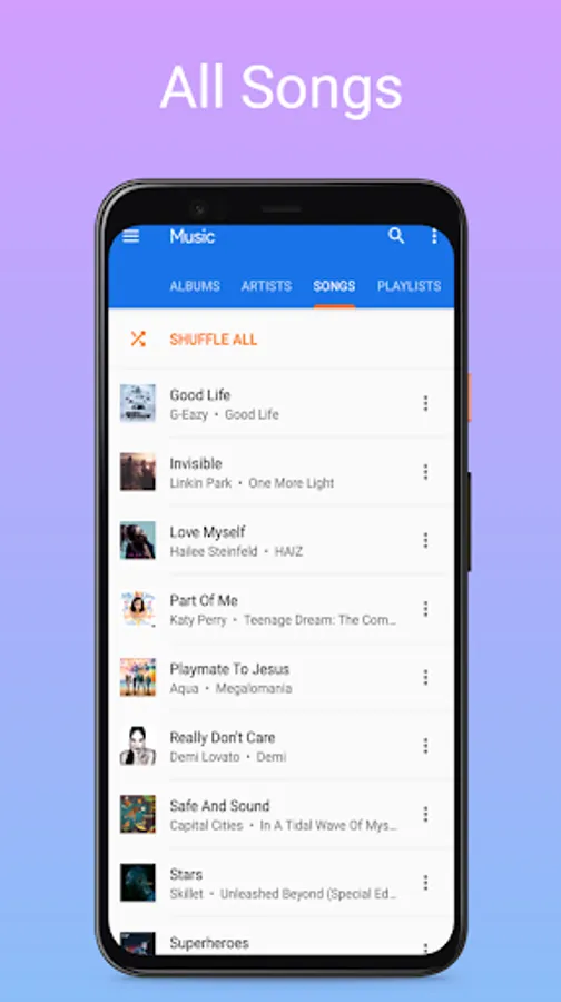 - Scans and allows you to view songs in several modes: gallery, album, artist, genre, folder, song, playlist