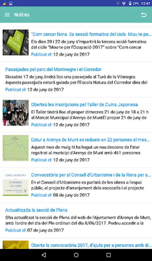 1. MUNNI permet accedir a les últimes notícies del seu municipi, consultar informació i la agenda dels propers esdeveniments del seu Ajuntament i d’altres entitats del municipi, així com rebre informacions importants de l’Ajuntament com per exemple, les ofertes públiques d’ocupació o els pressupostos del municipi.