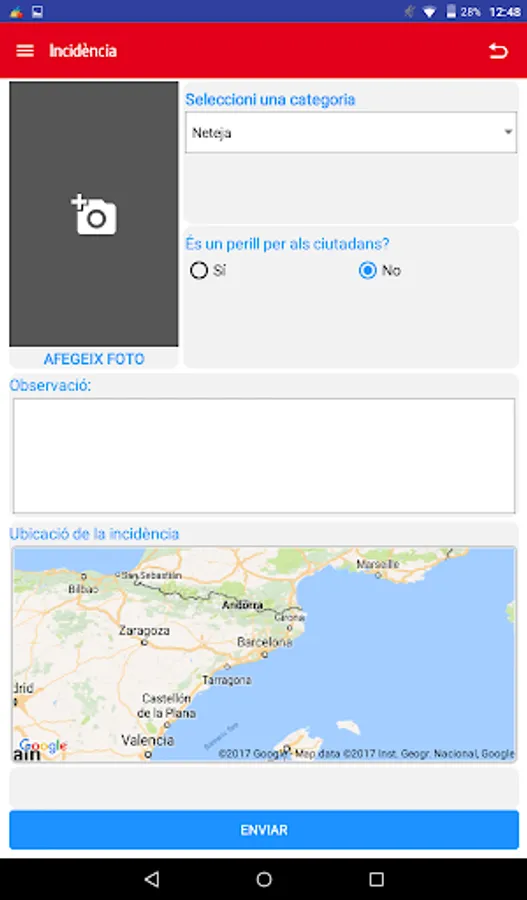 3. Gràcies a MUNNI l’usuari, a més, podrà comunicar als agent municipals les incidències del municipi que s’observen relatives a la neteja, el mobiliari urbà o la via pública, etc., incloent descripció, fotografies i posició GPS.