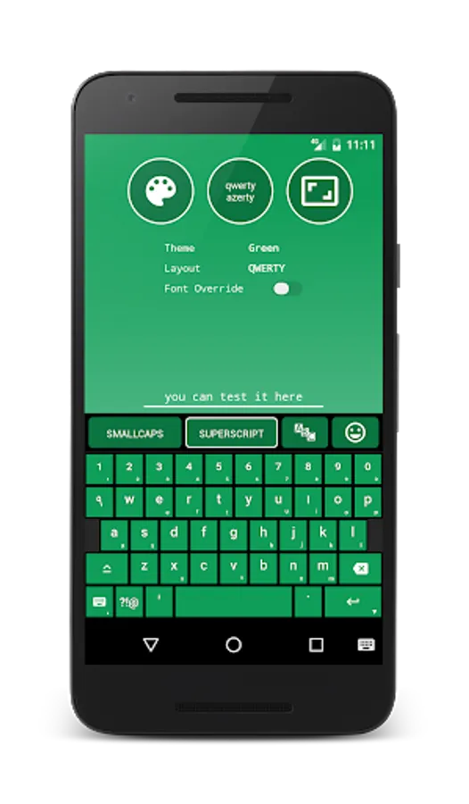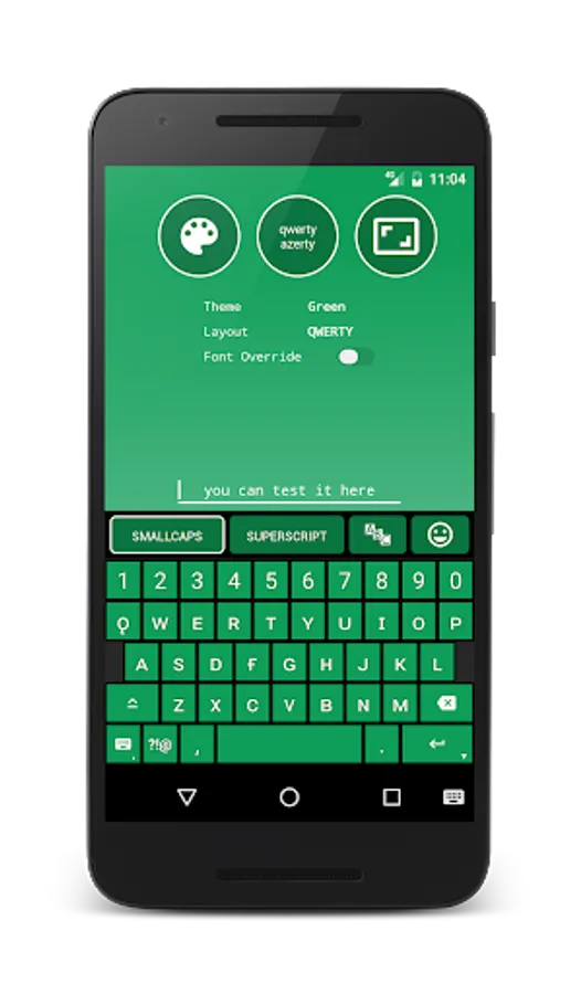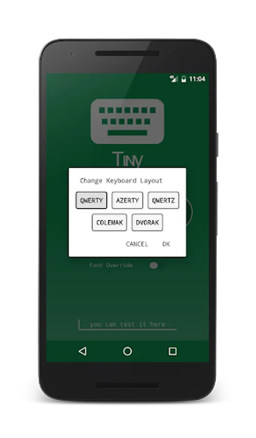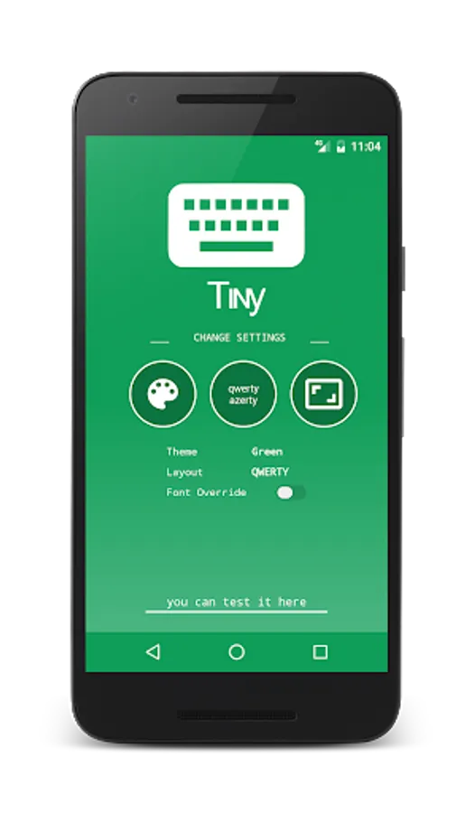 You can choose between 8 COLORS or set your own keyboard SIZE. Tiny Text also supports different keyboard layouts: QWERTY, AZERTY, QWERTZ, DVORAK and Colemak.