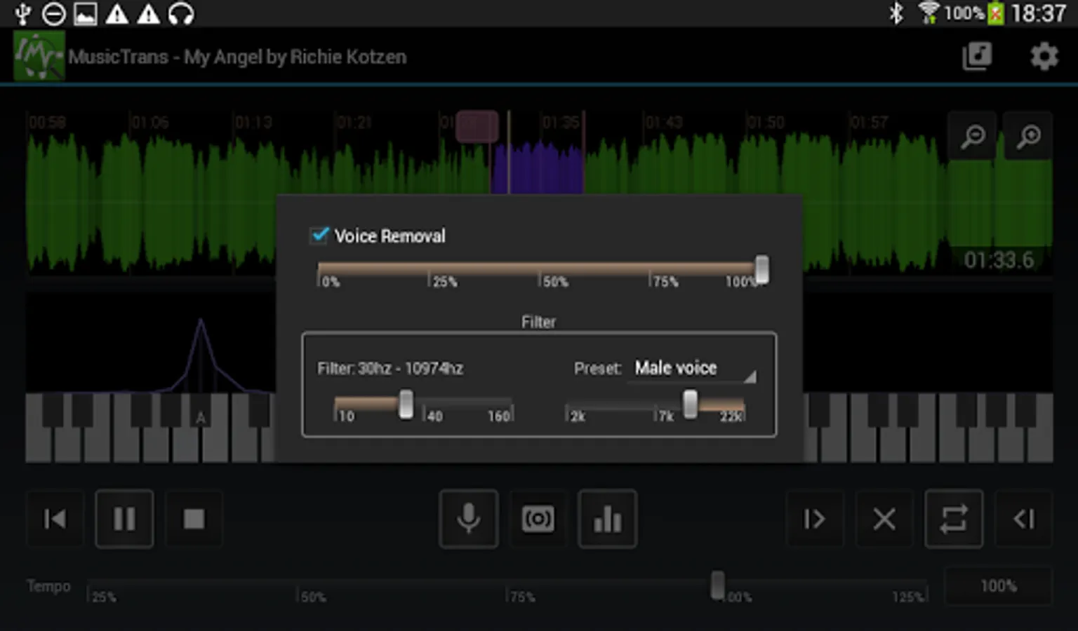 • Voice reduction keeping other details like the bass or other bass sounds.