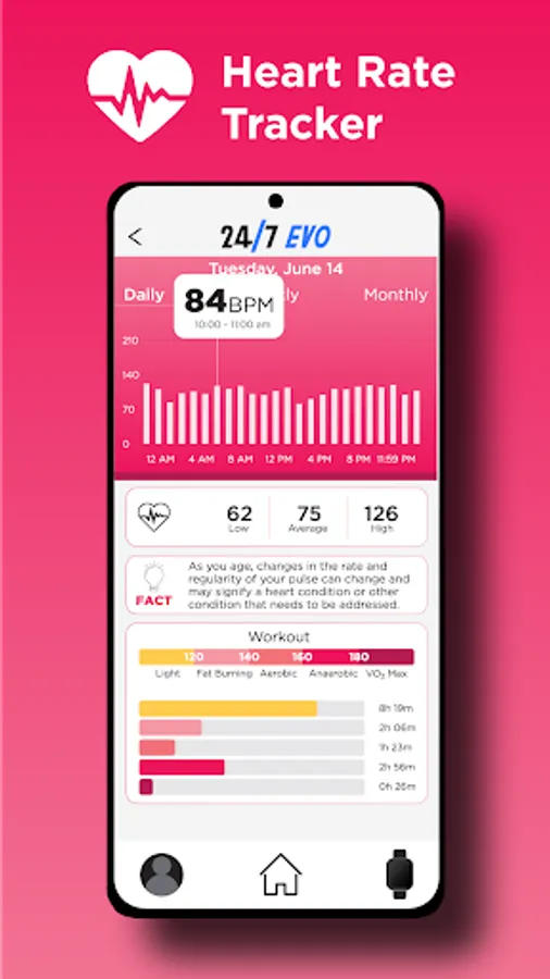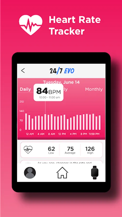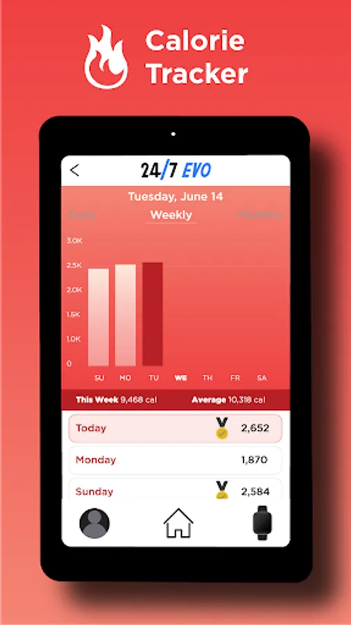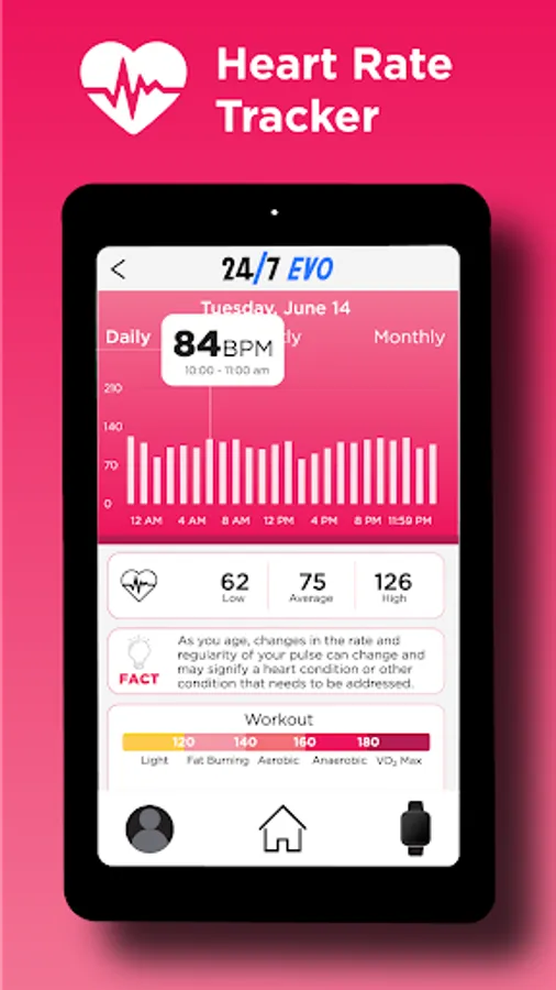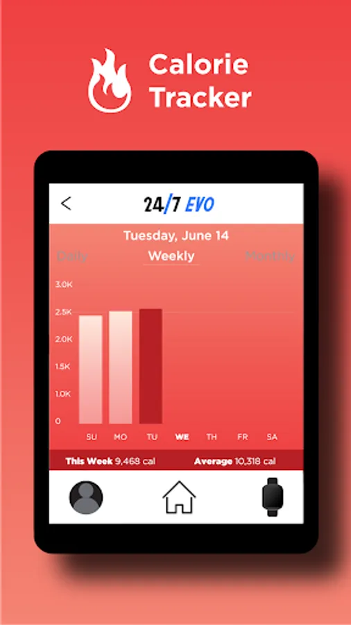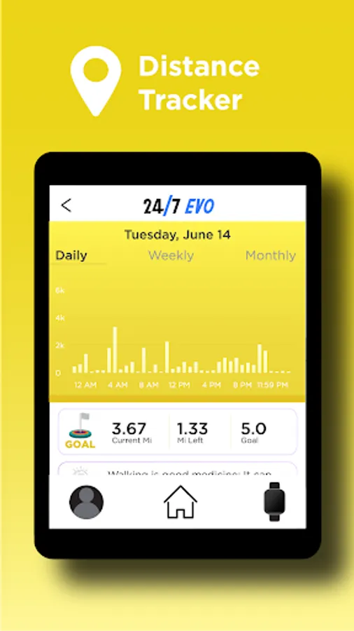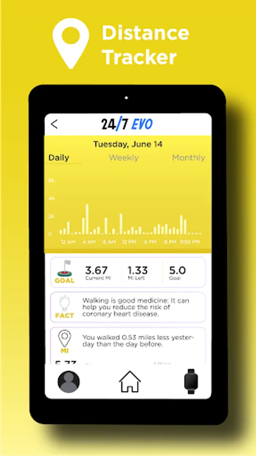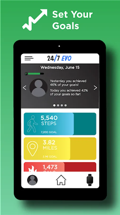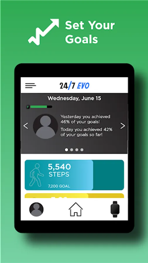 Set goals for health, fitness and nutrition. Pair with the 24/7 EVO to track steps, heart rate and calories burned.