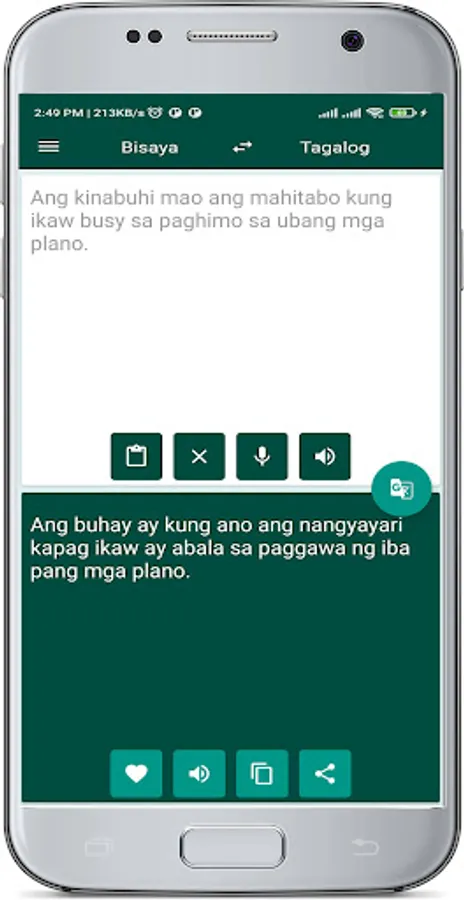 Bisaya Tagalog Translate application is perfect to translate texts fast in your phone or tablet.