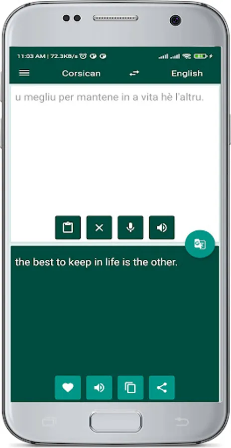 English Corsican Translate application is perfect to translate texts fast in your phone or tablet.