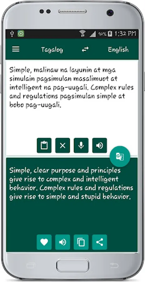 English Tagalog Translate application is perfect to translate texts fast in your phone or tablet.