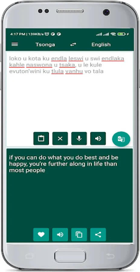 English Tsonga Translate application is perfect to translate texts fast in your phone or tablet.
