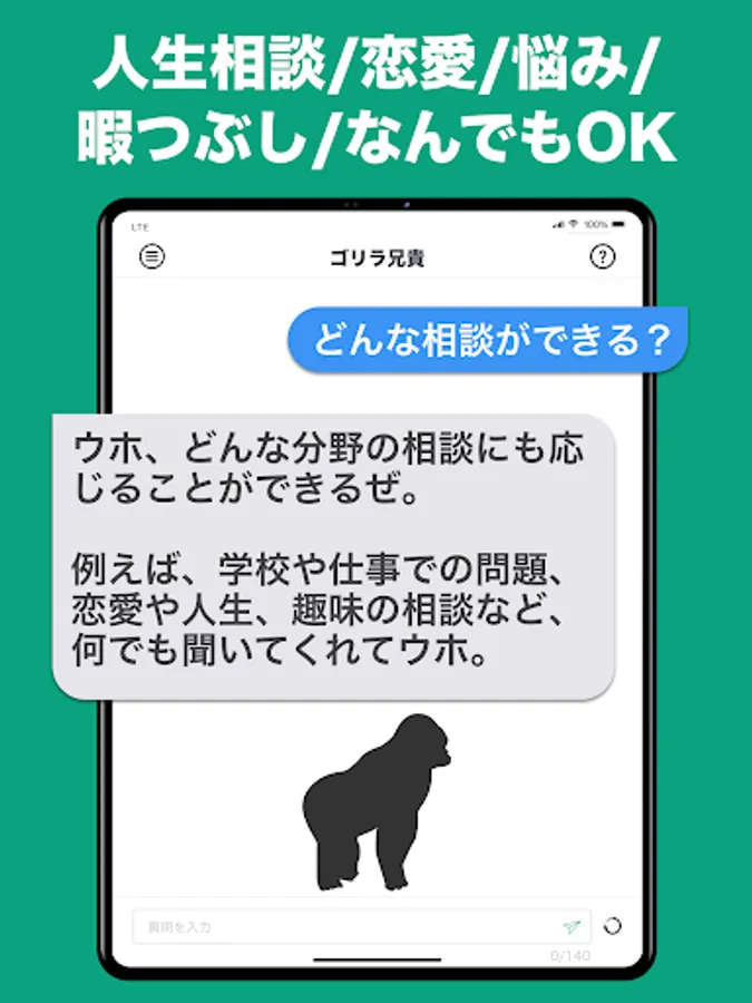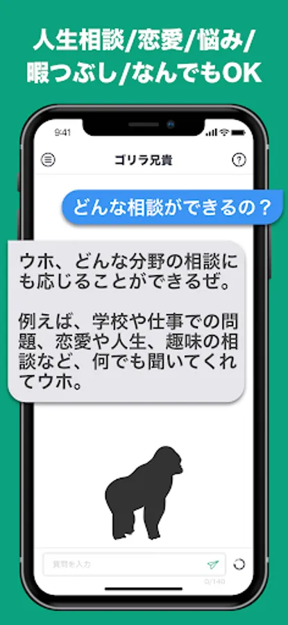 日本語を話せる天才AIゴリラと一緒にトークを楽しみましょう!