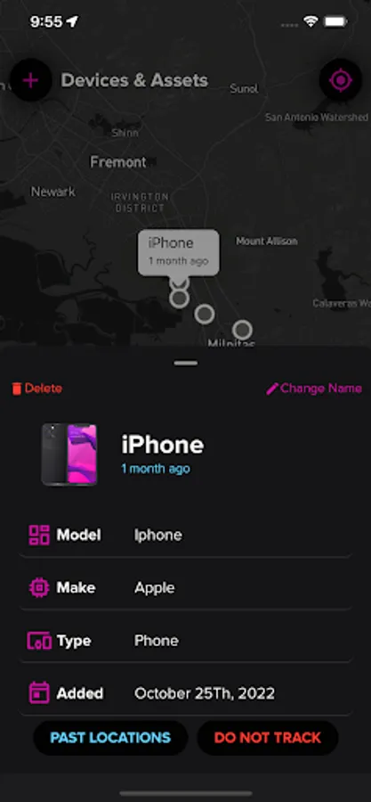 View the current location of your Devices and Assets. Mobile phones and tablets are automatically added to your tracking list.