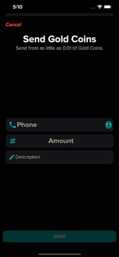 Send and Recieve fractions of Gold coins from as little as 0.001% of a Gold Coin.